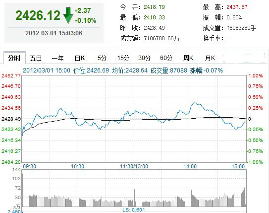 郭树清:本市场发展有坚实基础 投资者将得到更好保护;2月中国制造业PMI为51.0%;2月新增贷款预计约5000亿 远逊预期;隔夜利率创逾7个月新低 3月资金面相对宽松可期;三月解禁市值800亿规模同比降两成;国务院同意发布新空气质量标准增加PM2.5监测。
