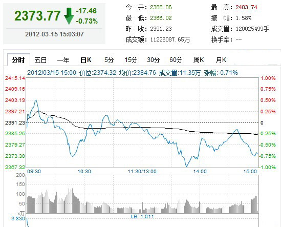 和讯股票消息 继昨日暴跌后,两市股指今日弱势震荡,双双收出阴十字星。截至收盘,沪指跌17点报2373.77点,跌0.73%,成交1122.6亿元,深成指跌8.33点报10086.56点,跌0.08%,成交1033.7亿元。