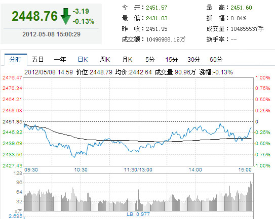 截至收盘,沪指报2448.88点,跌0.13%。深成指报10524.68点,跌0.83%。