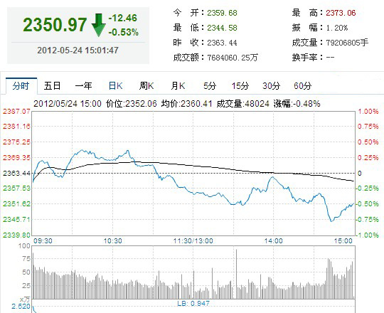 截至收盘,沪指报2350.97点,跌12.47点,跌幅0.53%;深成指报9984.58点。跌158.62点,跌幅1.56%。
