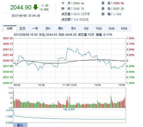 和讯股票消息 今日沪深两市以震荡走势为主,午间收盘前权重股一度集体拉升,带动沪指冲高,但之后随着权重股的回落,沪指窄幅震荡下跌。截至收盘,沪指跌0.09%,报2044.90点,跌1.88点,深成指涨0.23%,报8114.87点,涨18.78点,创业板涨0.87%,报1185.96点,涨10.25点。