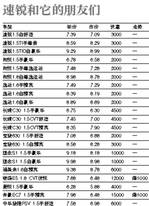 上周自主紧凑型车市场也多了一款新车型——比亚迪2014款速锐。2014款速锐为改款车型,售价未发生改变,同时新增了1.5L发动机+6速DCT变速器的动力组合。目前新款速锐已到店销售,优惠3000元。老款速锐仍有现车在售,综合优惠为1.3万元。