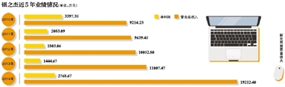 这已是银之杰上市5年来交出的最好成绩。2013年、2012年和2011年,银之杰分别实现归属净利润1444.67万元,1803.06万元和2083.09万元,净利润分别同比下滑19.88%,13.44%和38.68%。