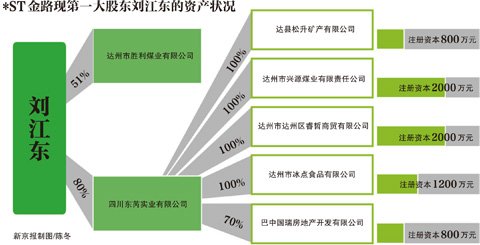 *ST金路披露的信息显示,刘江东目前担任达州市达县胜利煤业有限公司(简称“胜利煤业”)和四川东芮实业有限公司(简称“东芮实业”)执行董事兼总经理。