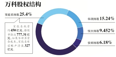 持股已占万科发行股本的9.452%;已耗资222.6亿元;宝能系等股东受益,宝能系账户浮盈已超300亿