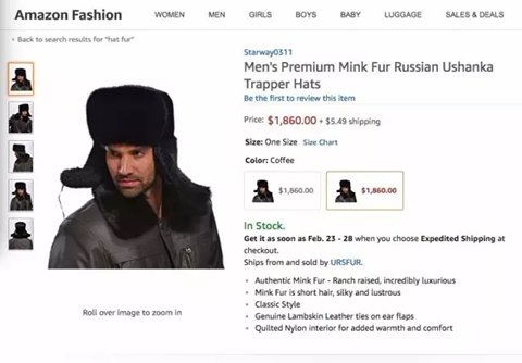 在美国亚马逊上输入关键词,搜索到的类似帽子的价格已经超过1800美元,将近1万元以上。