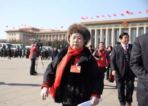 在两会期间,陶华碧的媒体公开亮相,有一件一身贵气的皮草。只系上头扣,行走间露出橙红色的丝巾。