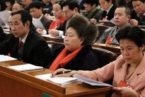 两会上,陶华碧一身素色,橙红色的围巾是她身上唯一的女性色彩符号,而这一抹亮色与她右边的男士比起来,颇似领带的角色。相比看来,坐在陶华碧左手边的这位女士,则是一席嫩粉色的正装。
