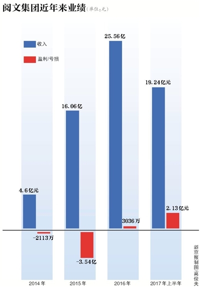 10月16日,由腾讯分拆的数字阅读平台阅文集团公布了2017上半年的财务数据,截至今年六月底,阅文集团收入19.24亿元,同比增长92.4%,实现期内盈利2.13亿元,去年同期亏损238.1万元,扭亏为盈。