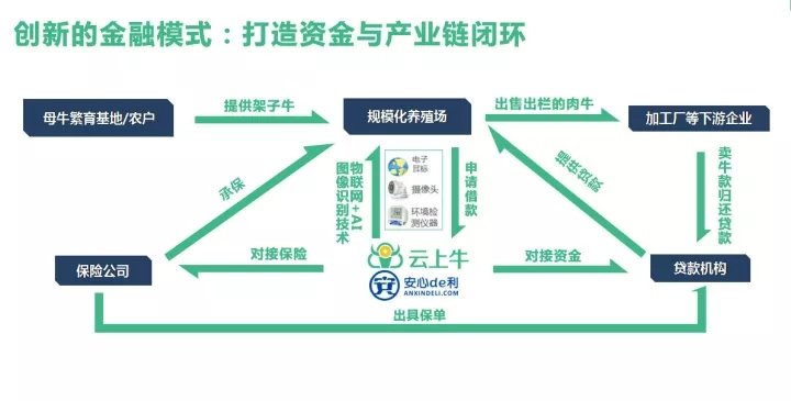 3. 云上牛最大的优势就是借助硬件设施将肉牛“资产化”、“标准化”。基于自身研发并联合硬件厂商定制的物联网风控系统获得银行、保险公司的高度认可,未来将可以为金融机构提供数据接口和风控服务。