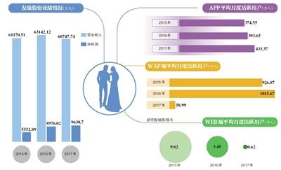 新京报记者注意到,这已是友缘股份第二次冲击A股。相比第一次,该公司的营业收入增速大幅下滑,甚至出现了负增长。月度活跃用户数,三年时间内缩水约六成,而公司大力布局的婚庆业务,在2017年度处于亏损状态。友缘股份向新京报记者回应称,移动互联网的人口红利期结束,并不意味着在线婚恋交友市场增量的结束。在线婚恋交友市场仍有增长空间。