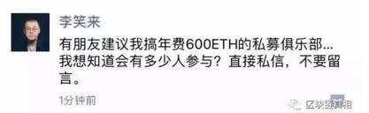 同时,他还创建了号称国内最贵的年费社群——区块链私募俱乐部,该俱乐部向会员提供ICO私募项目,但收取年费为600ETH(彼时约360万人民币)。“笑来录音”事件也发生在这个节点。