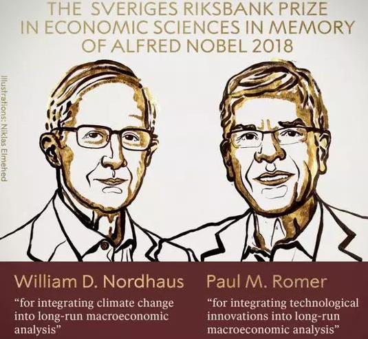今年的获奖者是两位美国学者,分别是威廉·诺德豪斯William D. Nordhaus、保罗·罗默Paul M. Romer。
