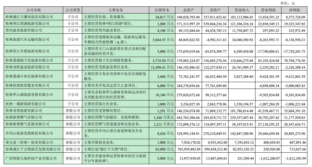 桂林旅游子公司净利润情况(图源:桂林旅游公告)