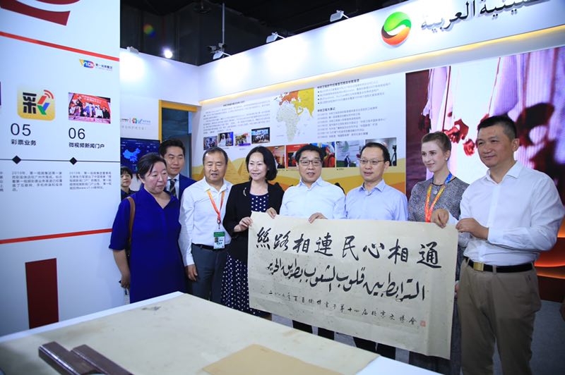 国家广电总局规划财务司司长孟冬,市委宣传部副部长赵磊,北京市广电局党组书记局长杨烁等领导在第一视频展区调研“走出去”等工作。