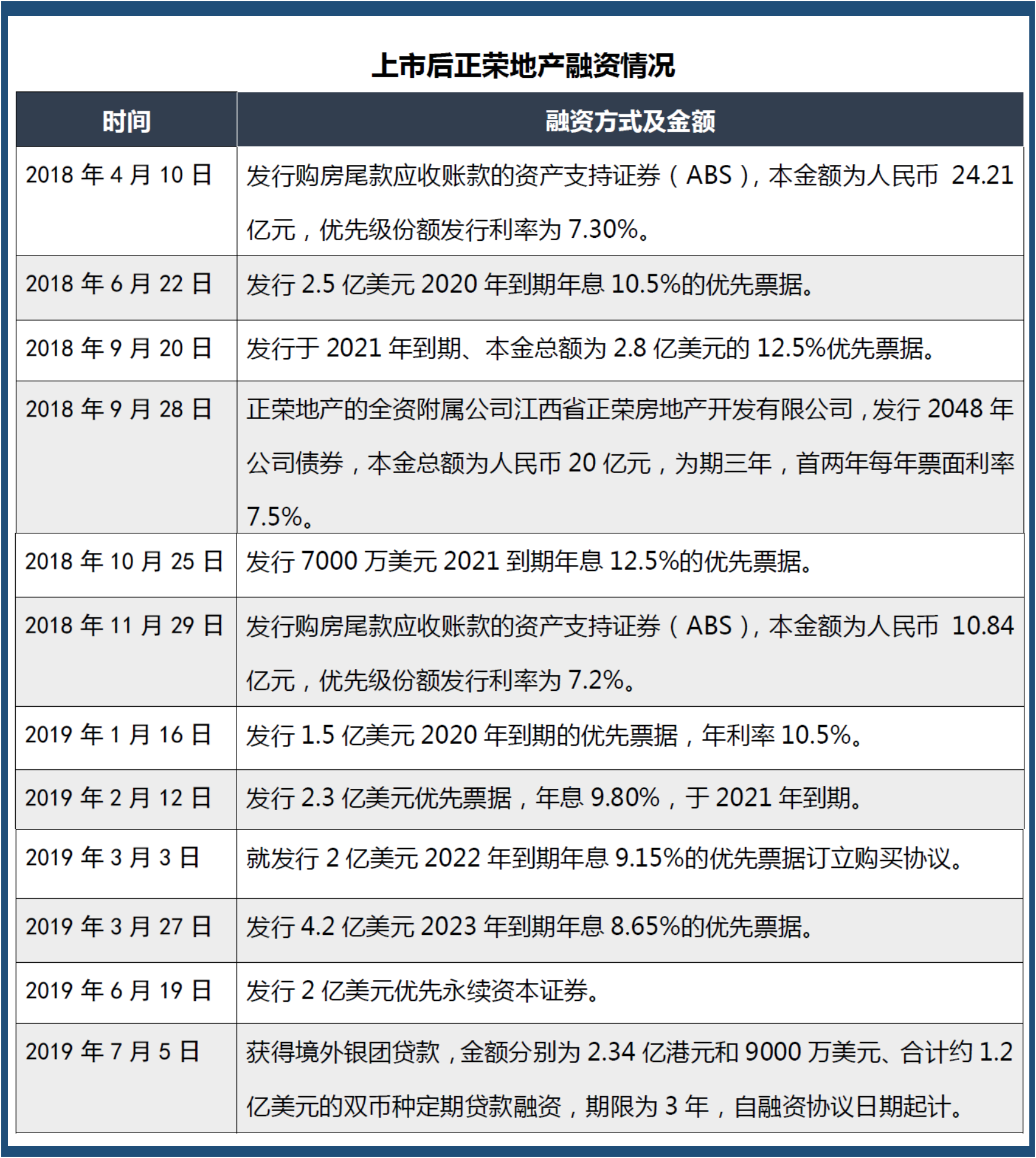 值得关注的是,今年上半年,正荣地产仍然保持了较为频繁的融资节奏。