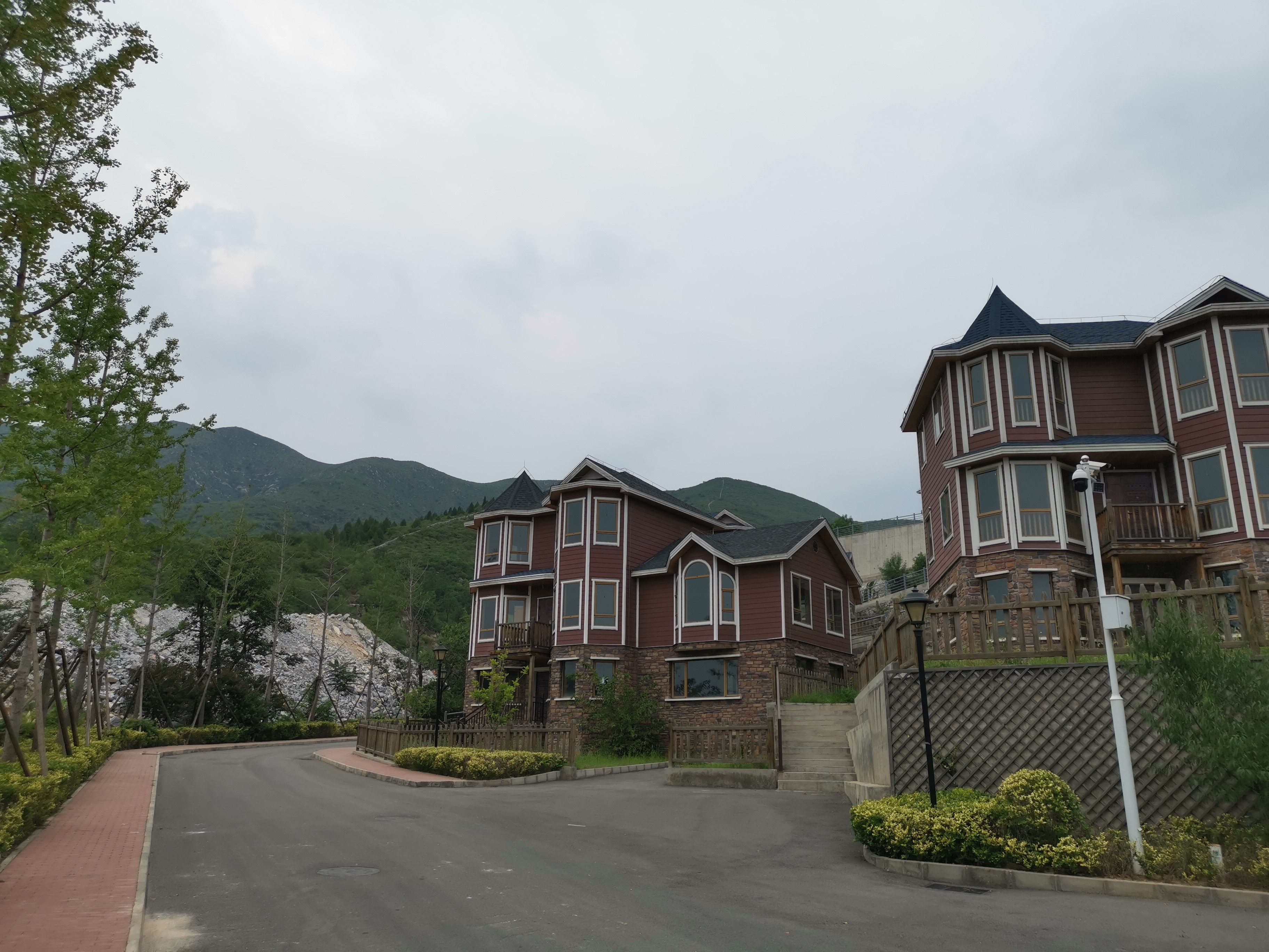 进入该小区,新京报记者发现整个项目依山而建,已经初具规模。从外表看,项目内分布着低层建筑以及高层建筑,部分低层建筑已经完工,并安装了空调,但是部分高层建筑只有框架结构。