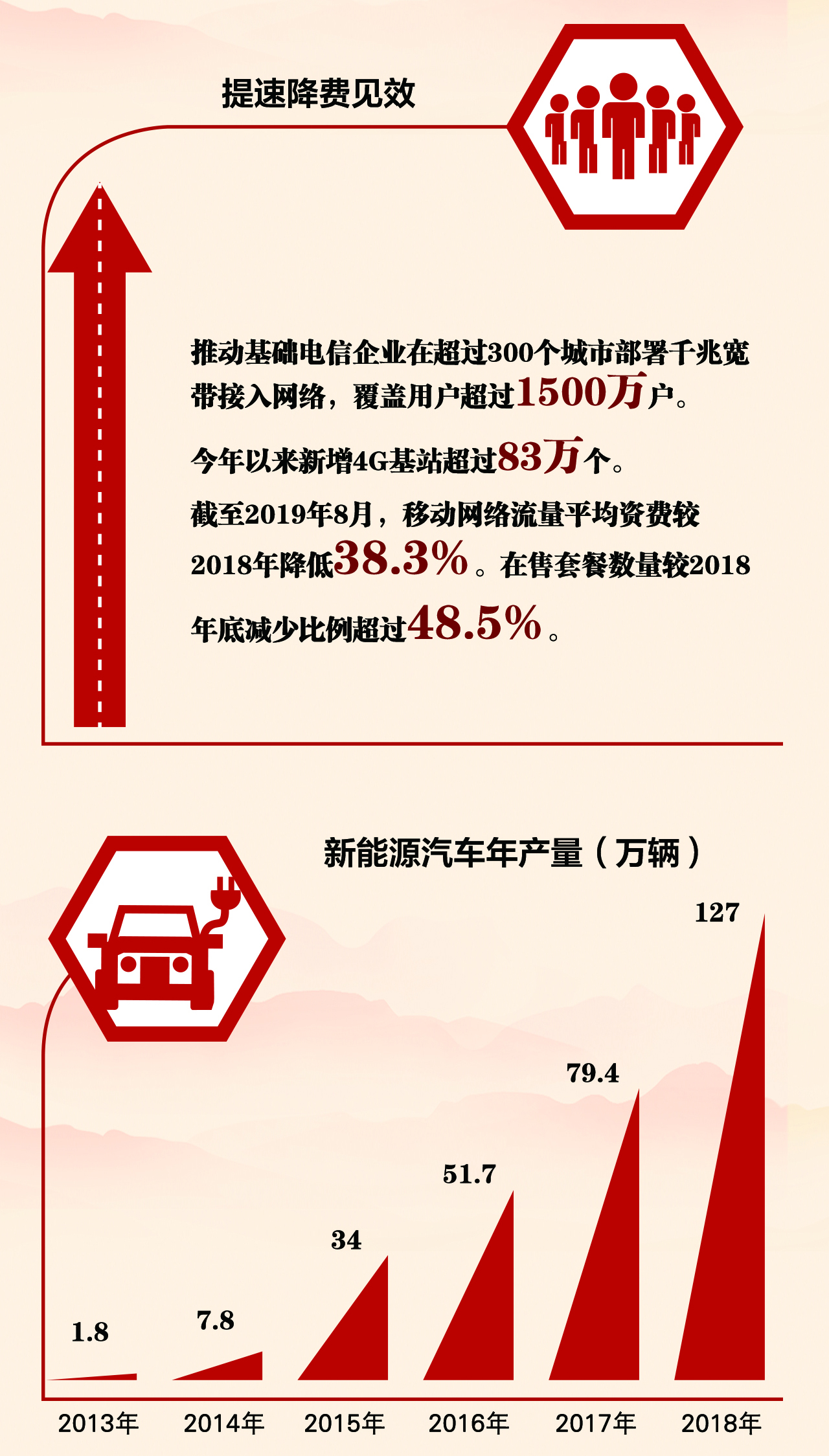 工信部数据显示,截至2019年8月,移动网络流量平均资费较2018年降低38.3%,中小企业专线和宽带平均资费分别较2018年降低23.8%和30.7%;港澳流量漫游平均资费较2018年降低36.2%;在售套餐数量较2018年底减少比例超过48.5%。电信企业已对建档立卡贫困户使用基础通信服务给予5折优惠,惠及用户近300万户。