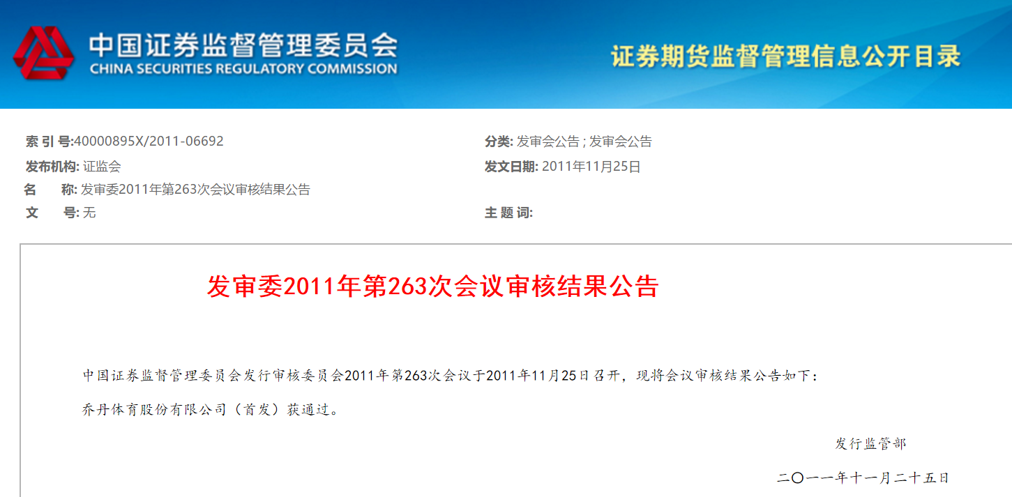但直到近8年后的今天,乔丹体育仍未获得批文。据证监会每周例行披露的发行监管部首次公开发行股票企业基本信息情况表显示,截至今年10月11日,乔丹体育的审核状态仍为“已通过发审会”。