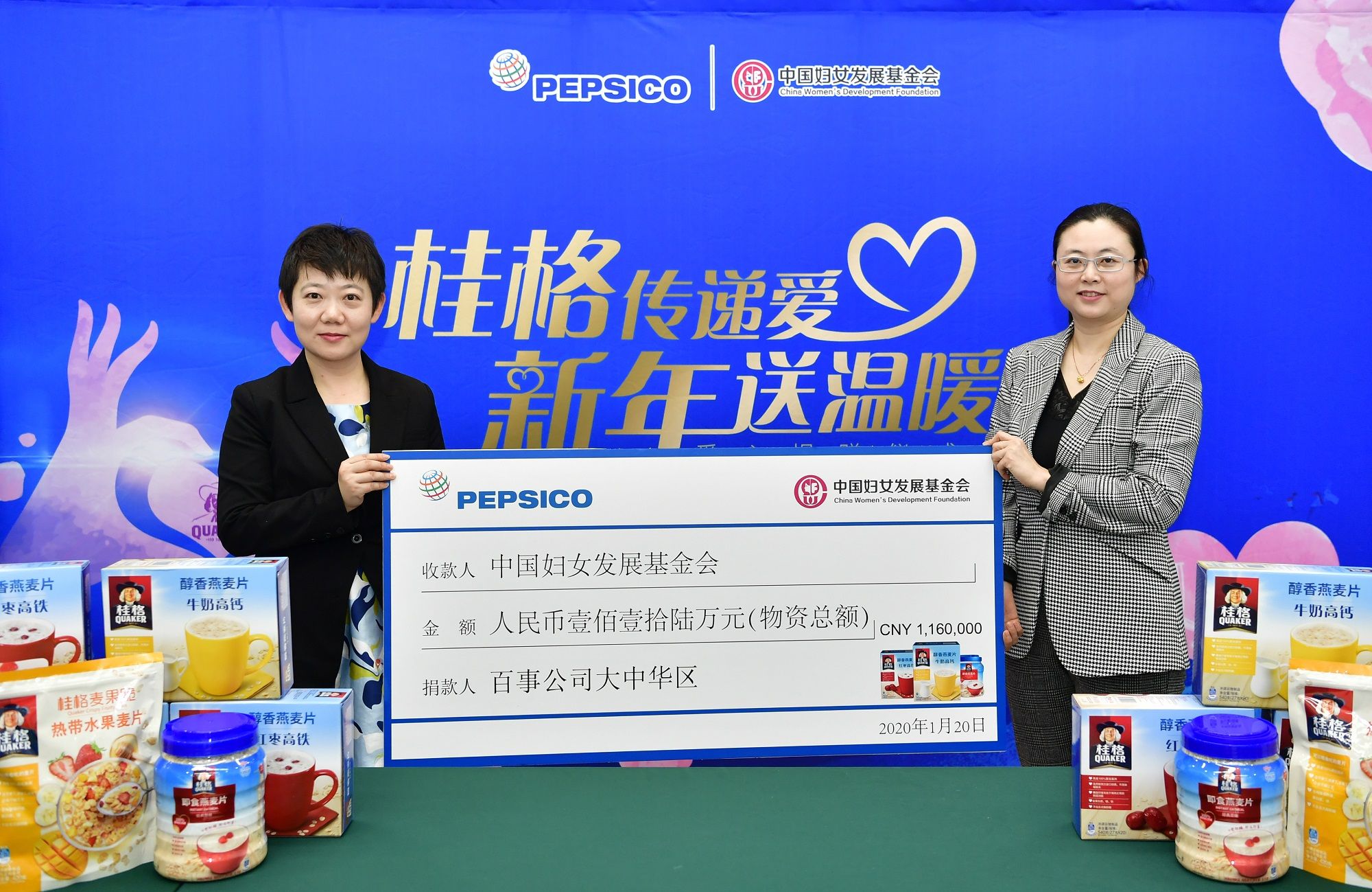 新京报讯(记者 王子扬)2020年1月20日,百事公司大中华区(简称“百事”)宣布携手中国妇女发展基金会(简称“妇基会”),向贫困、受灾地区捐赠价值116万元的桂格营养产品。本次捐赠将重点支持四川省阿坝州、凉山州和甘肃省甘南州等“三区三州”深度贫困地区和其他欠发达地区,预计将惠及24000名贫困妇女及家庭。