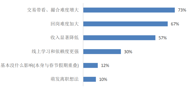 问卷调查显示的疫情对经纪人的影响。