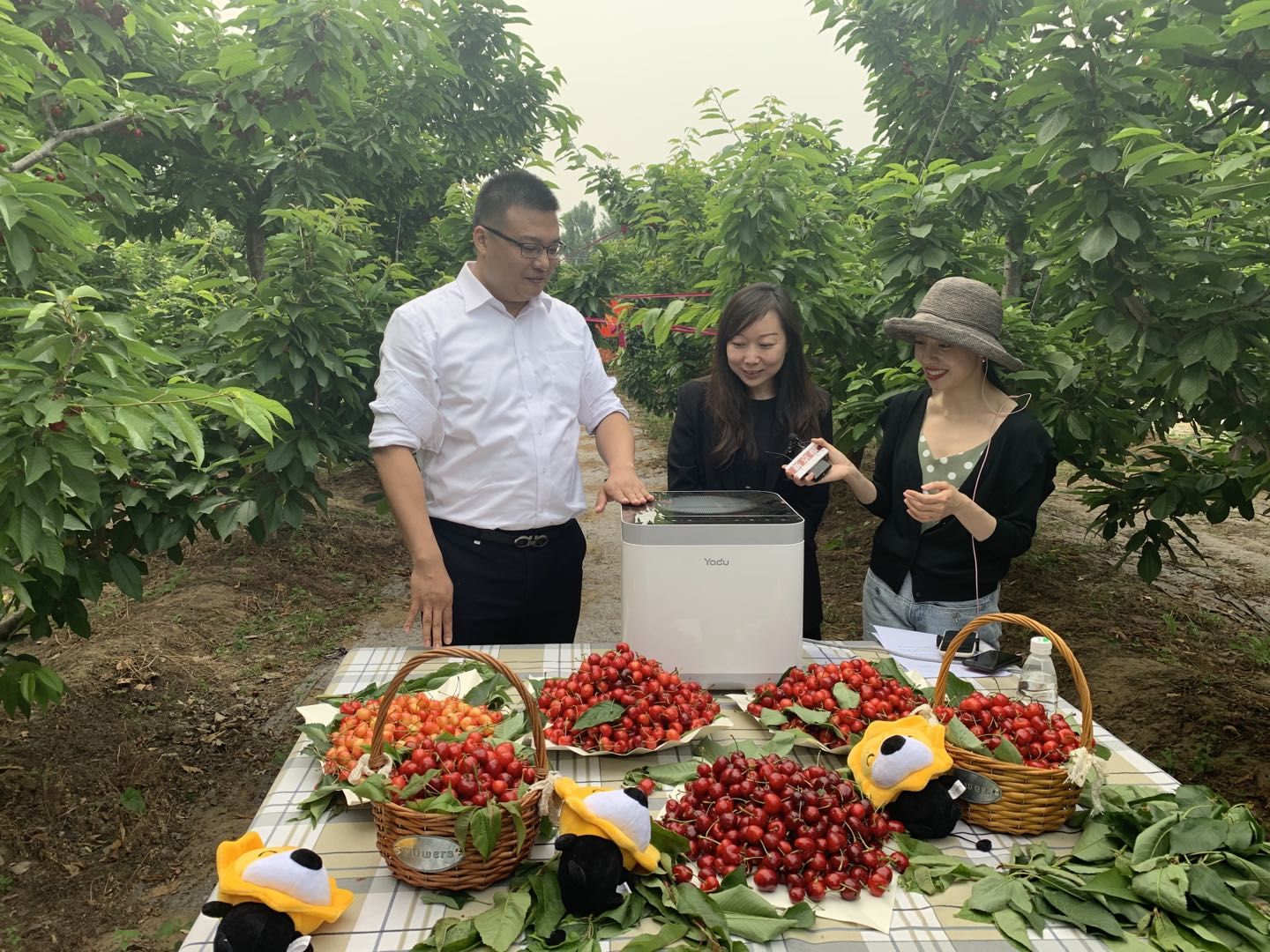 在直播现场,北京苏宁易购大区总经理郝嘉、家乐福华北区副总裁舒华也受邀来到樱桃基地,化身主播向网友送出食材净化器、破壁机、垃圾处理器等多个福利。