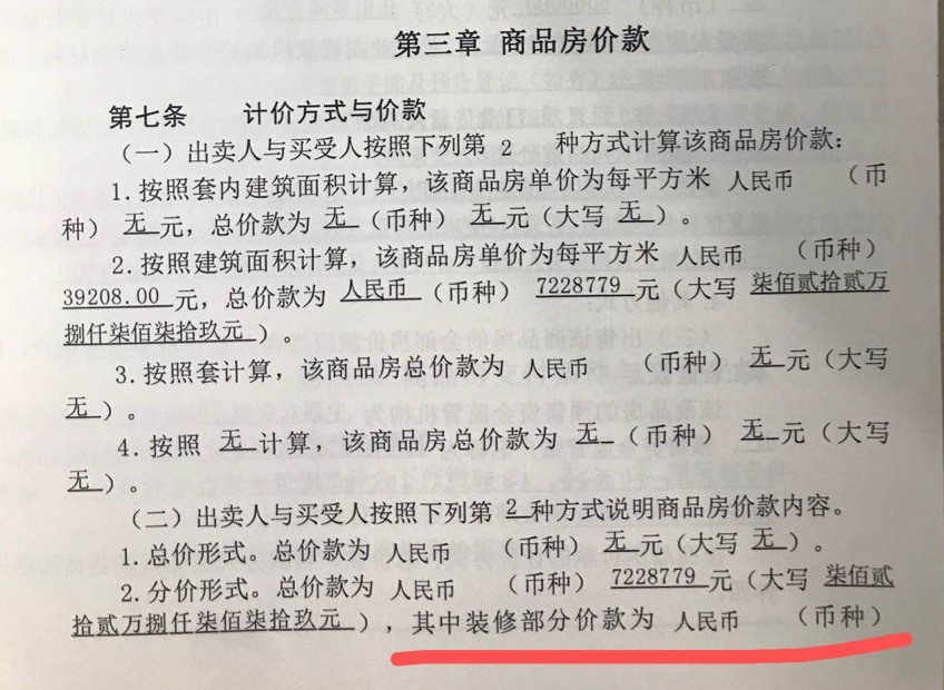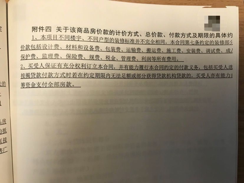 李浩还表示,“我们不是法律专业人士,在购房之前,基本都未留意合同附件四的这条约定,如果将利润加到装修项目上,那么装修项目又成为开发商牟利的新模式,设置房子备案价就失去了意义。如果绿城在相关部门的毛坯和装修备案价格不是合同中的价格,那就再次说明整个销售流程是违规的。我们未在售楼处看到关于装修的具体公示,就此,我们多次向绿城方面询问该项目的毛坯房和装修备案价格,但至今未得到确切回复。”