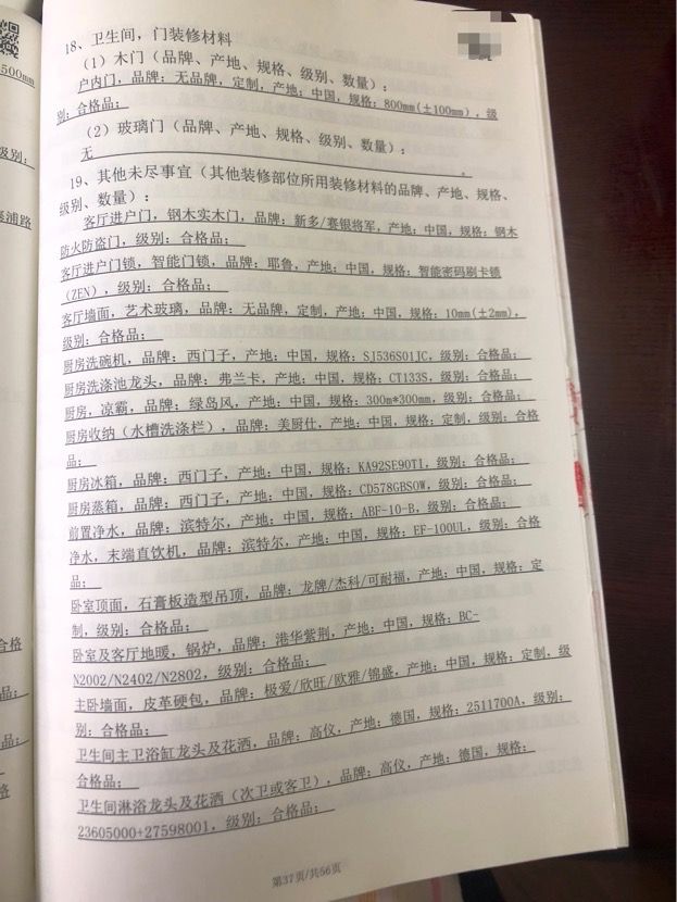 同时,一些购房人将湖境云庐实际装标明细与合同中约定的装修标准(如上图)进行对比,并按照市场价格计算出总价约为6.3万元。“按中叠185平方米建筑面积计算,即精装修单位成本=(精装修总成本+室内主材采购成本)/总建筑面积去计算,最后的造价也就3000元/平方米。”购房人李浩(化名)说。