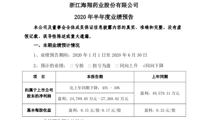 海翔药业上半年利润减半 盐城子公司曾环保违规