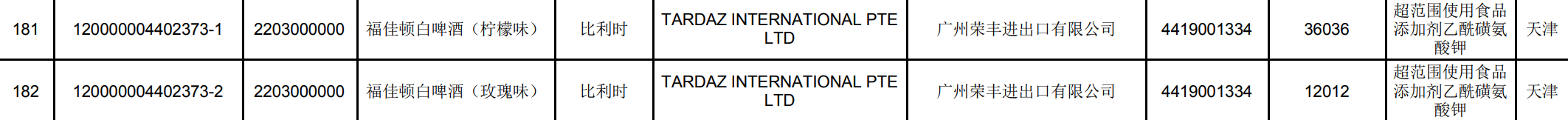新京报讯(记者 郑明珠)近日,进出口食品安全局发布了2020年8月全国未准入境食品化妆品信息。信息称,2020年8月,全国海关在口岸监管环节检出安全卫生项目不合格并未准入境的食品206批次,其中,百威英博集团旗下的精酿啤酒福佳啤酒进口自比利时的2批次共48048千克产品被海关拒绝入境,原因均为超范围使用食品添加剂乙酰磺胺酸钾,分别为福佳顿白啤酒(柠檬味)和福佳顿白啤酒(玫瑰味)。