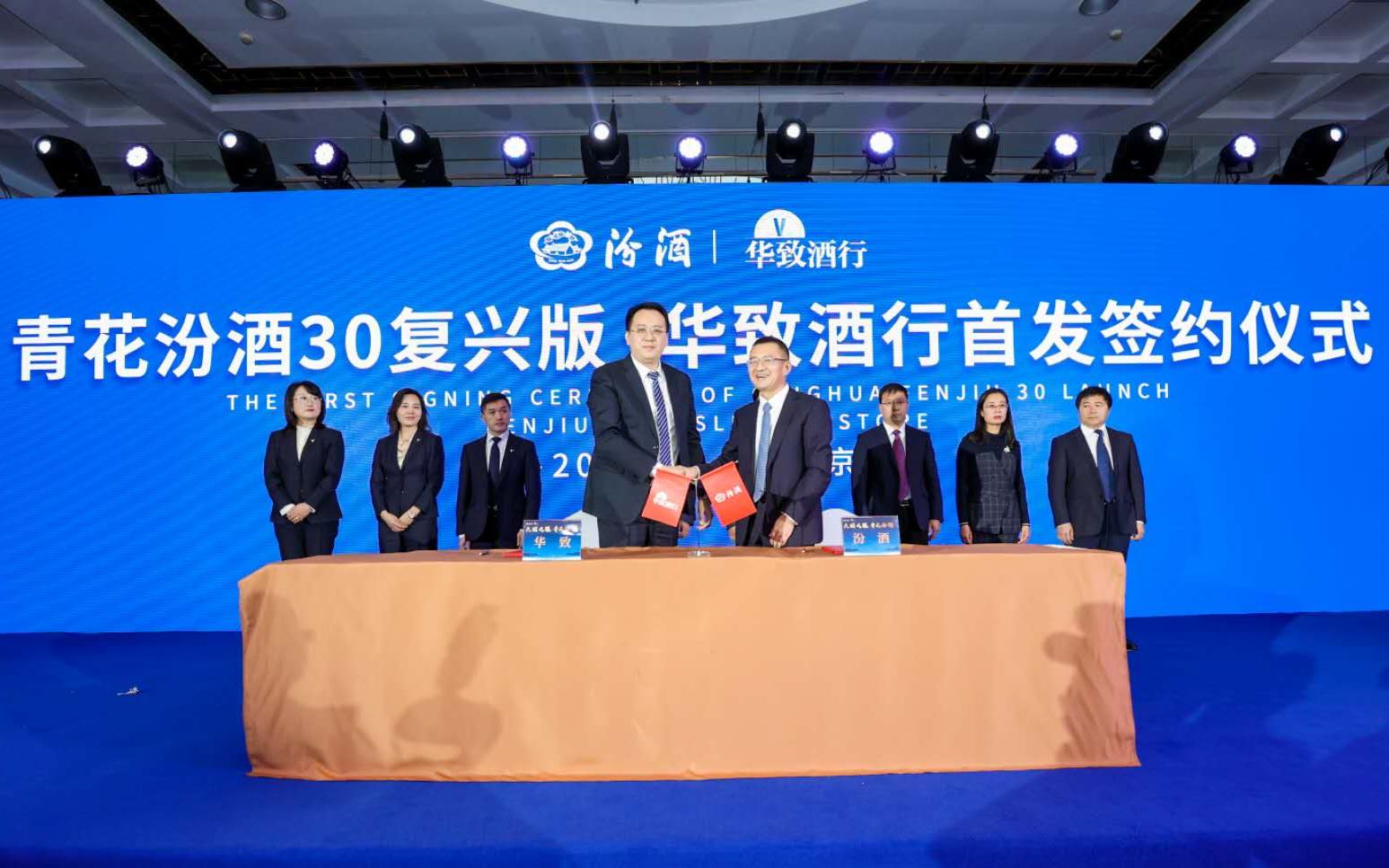 山西汾酒销售公司常务副总经理张永踊和华致酒行执行总裁李伟作为双方代表进行签约。