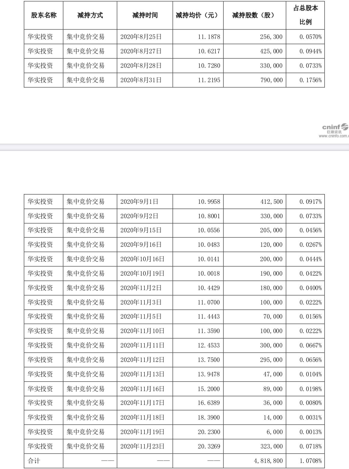 同时公告披露,截至公告日,华实投资在减持后仍持有公司股份270050540股,占公司股份总数的60.0112%,为公司控股股东,本次权益变动不会导致公司股权发生变更。