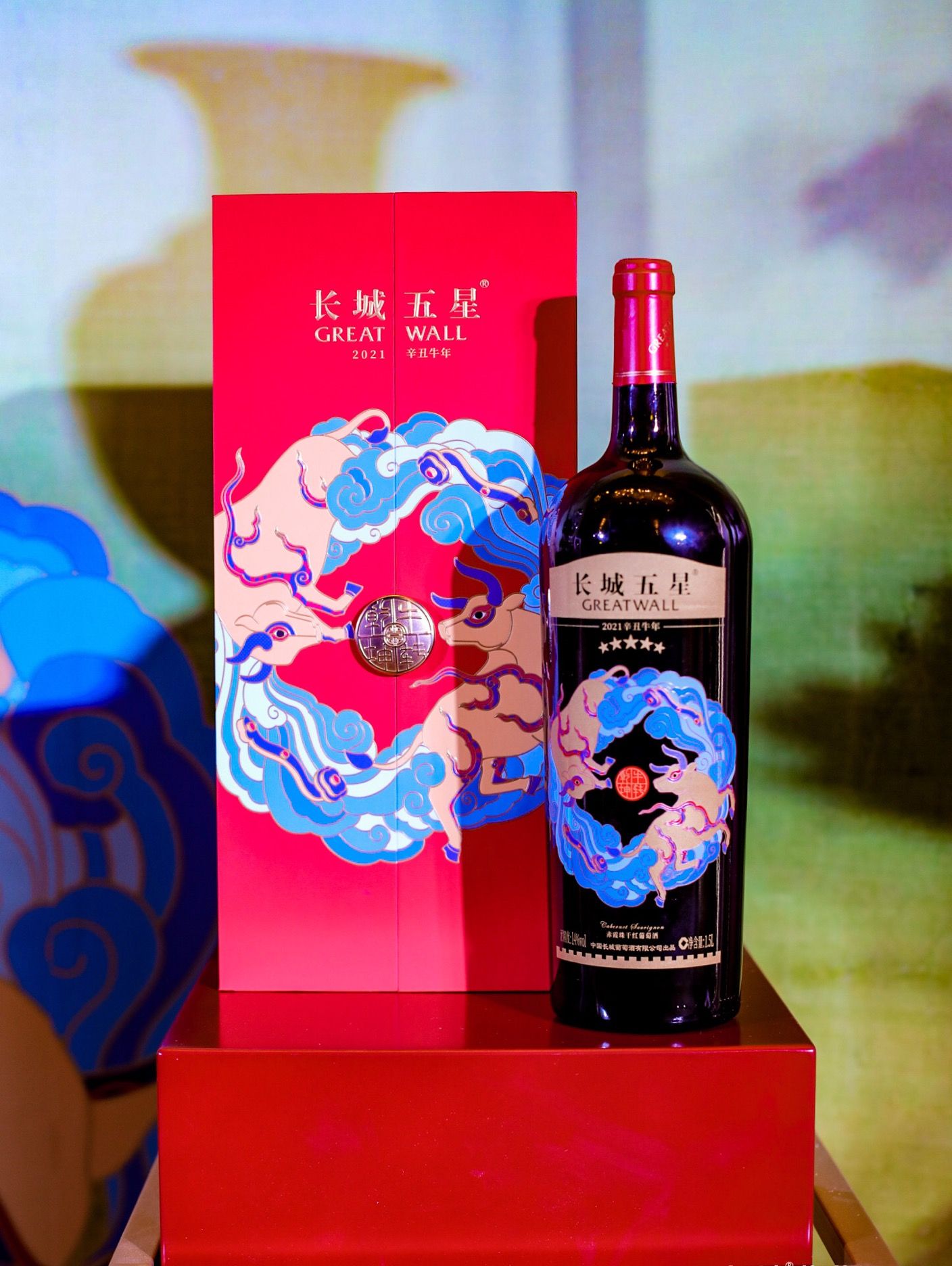 在年会现场,2021“牛转乾坤”长城五星牛年生肖酒、长城桑干酒庄新年份酒同步上市。