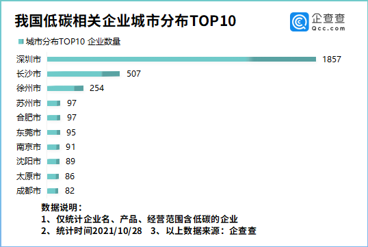 低碳相关企业城市分布:深圳最多,其次是长沙、徐州