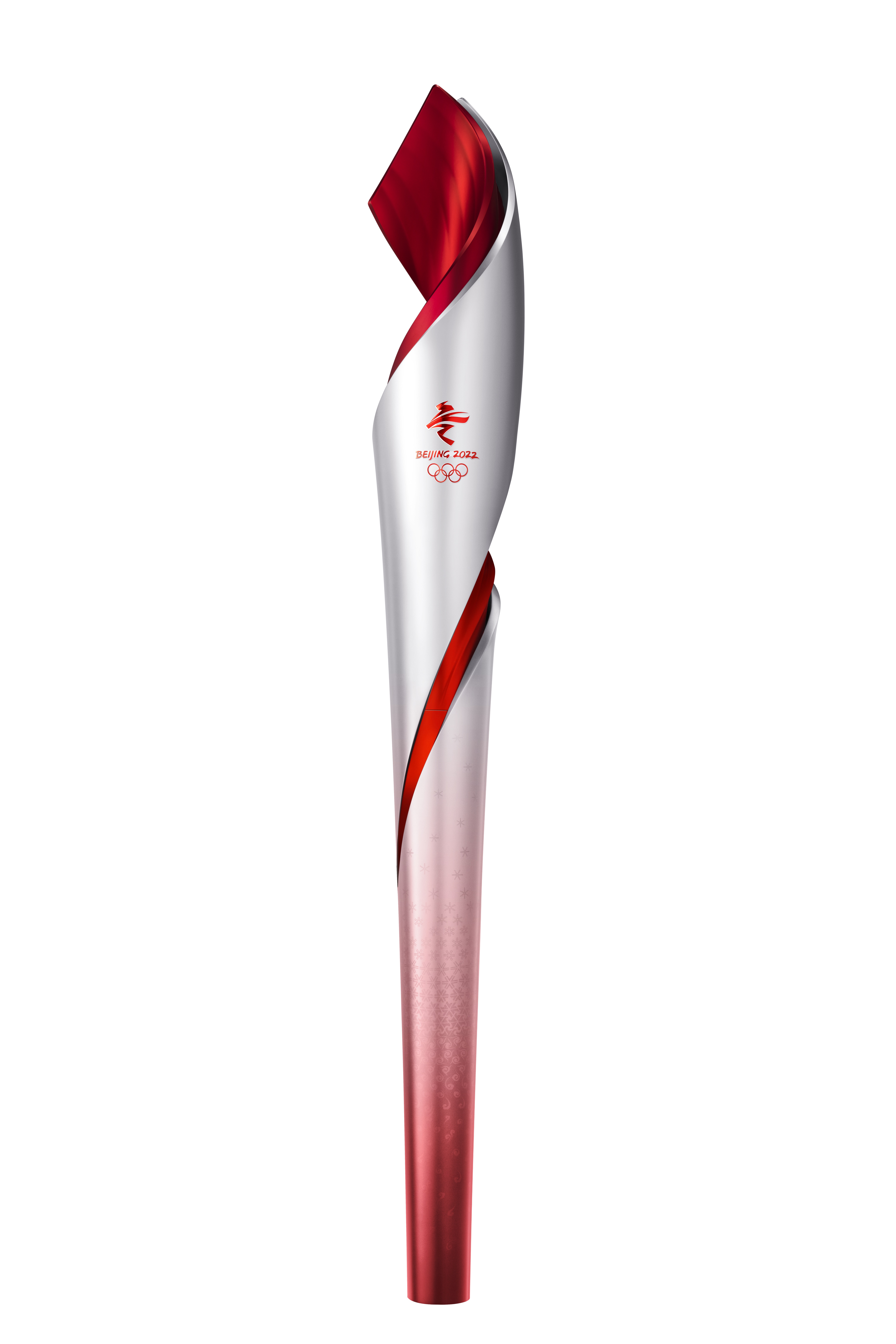 主体的银色和红色象征冰火相约,激情飞扬、照亮冰雪,也温暖了全世界。自下而上,内外双层结构如丝带飘舞,最后和飞扬的圣火融为一体。动感、飘逸的红色线条围绕着火炬上下贯穿,象征着激情的冰雪赛道,表达了人类生生不息、向往和平、追求卓越的期望和奥林匹克运动的力量。
