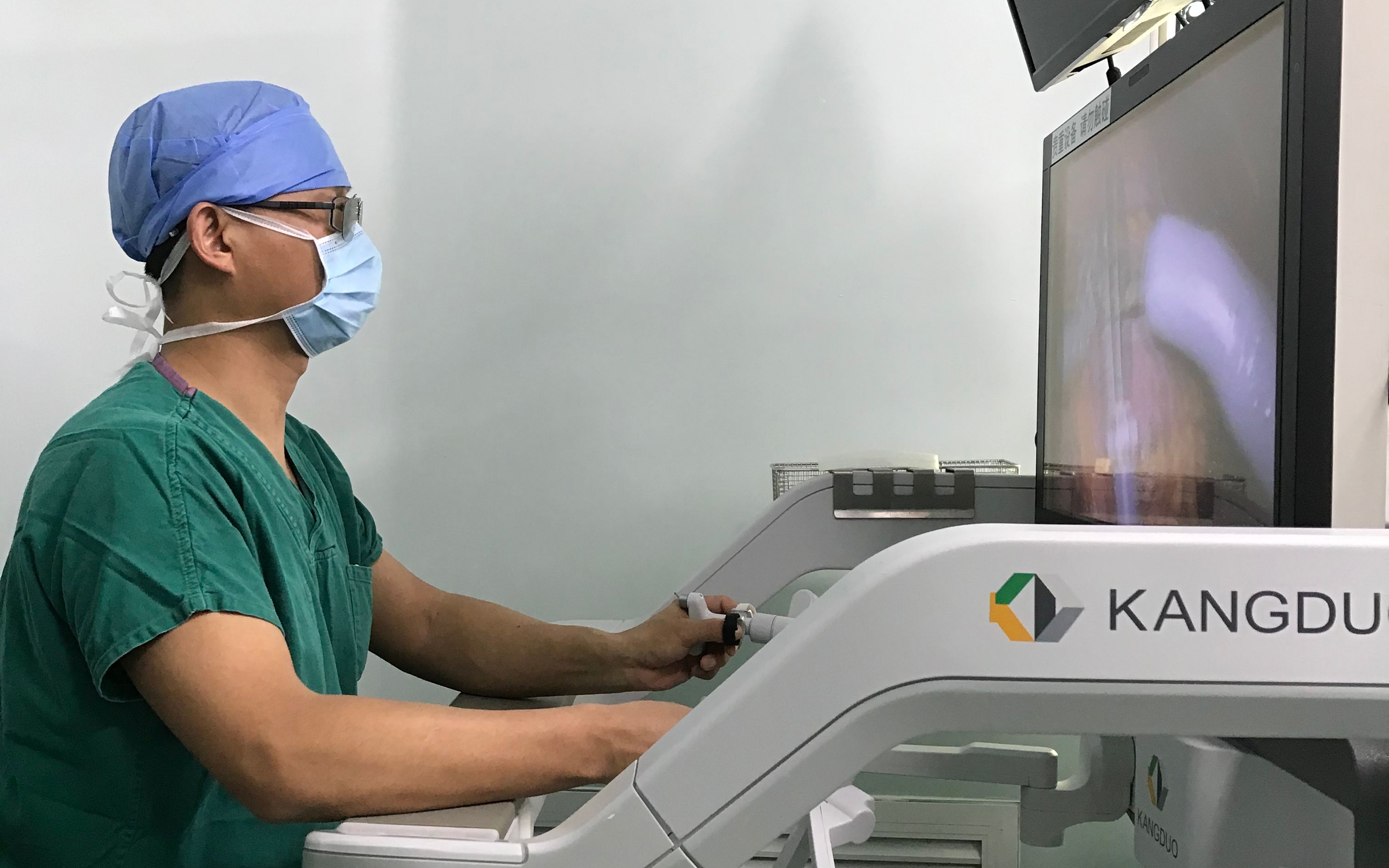 北大医院泌尿外科李学松教授使用国产手术机器人开展上尿路修复手术。北大医院供图