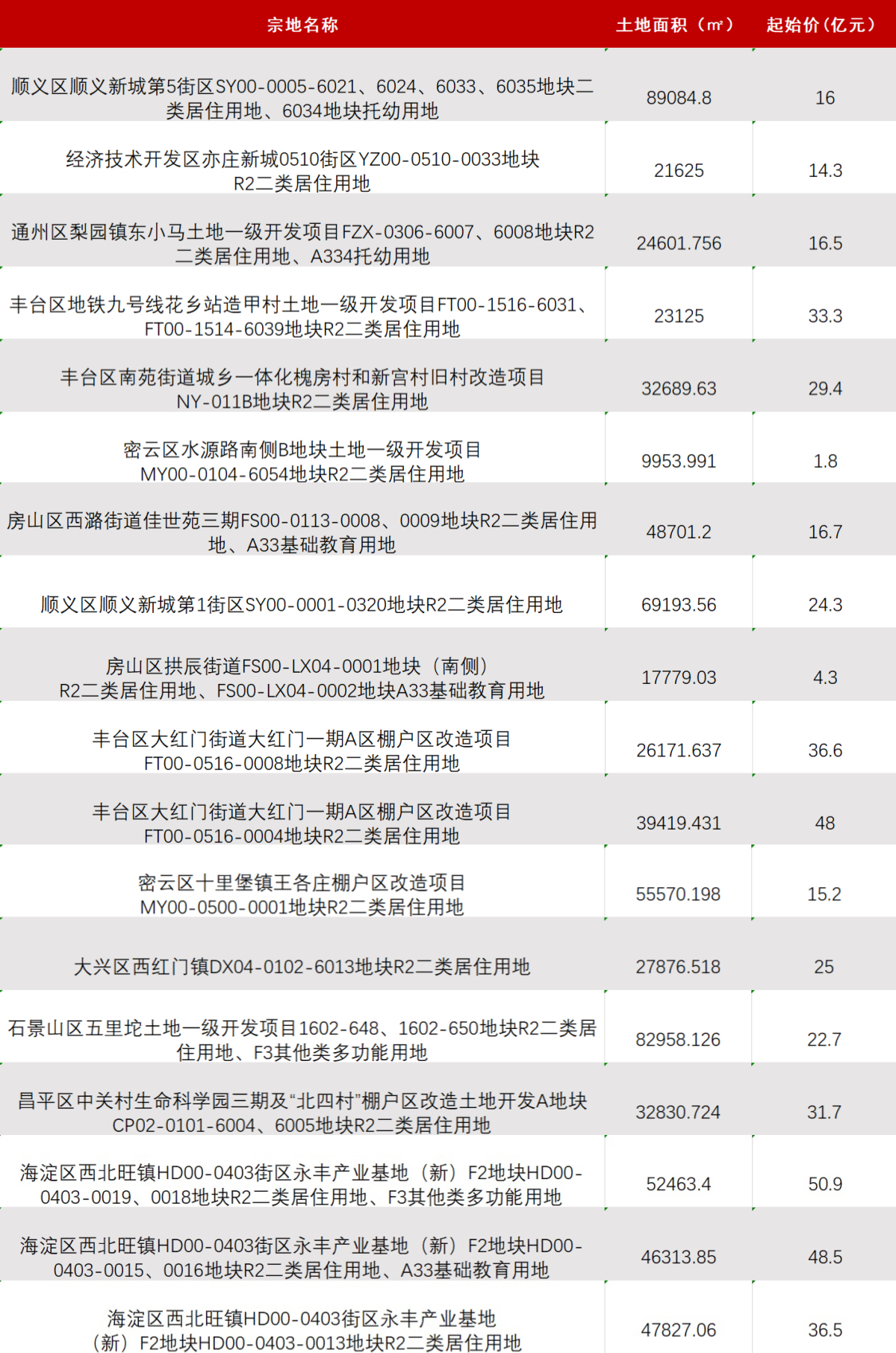 北京市第三批集中供应地块信息一览