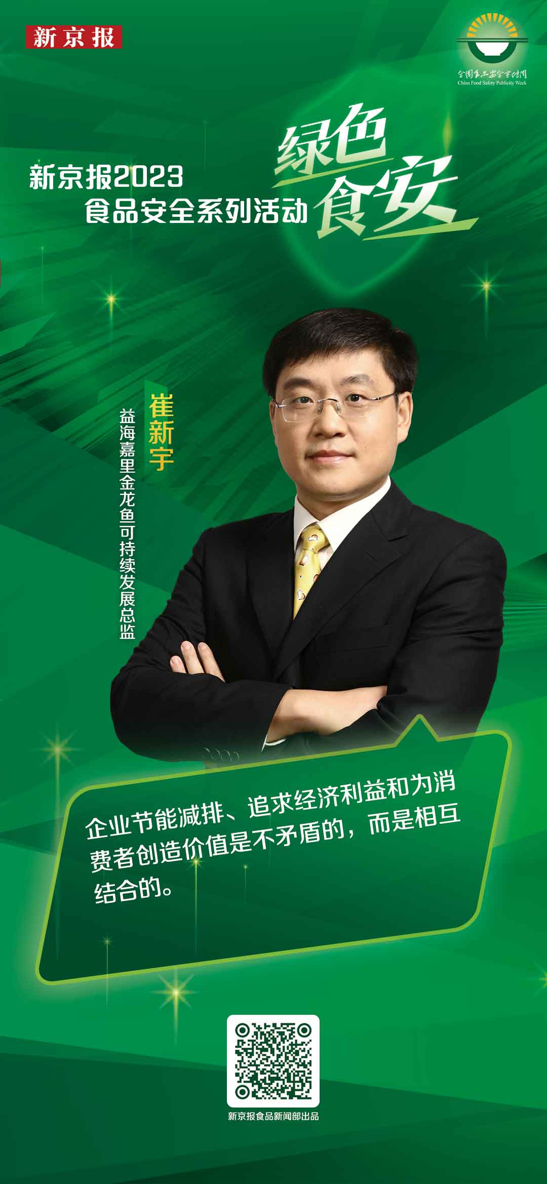 首页 > 商业 金句丨崔新宇:企业节能减排和为消费者创造价值不矛盾 2023-06-27 12:09:41 记者:刘欢 编辑:张明璇 新京报记者 刘欢编辑 张明璇设计 林晨旭校对 朱名恬 272 +1 微信 我要评论 登录 相关推荐 《餐饮服务连锁企业落实食品安全主体责任监督管理规定》发布 HI财讯 1批次食醋抽检不合格,“巧妈妈”再涉食安问题 食品安全 抽检 巧妈妈 醋 产经速递 8902 2025餐饮业食品安全创新实践产业链高质量发展推进会召开 食品安全,产业链 产经速递 发起溯源行动、呈现特色品牌日,多家餐饮企业亮相链博会 链博会 餐饮 供应商溯源 食品安全 产经速递 金锣:AI识别、数字化溯源层层加码,让消费者“食肉无忧” 金锣 数字化 肉制品 食品安全 行业观 86400 从源头到餐桌,双汇多措并举筑牢食品安全防线 双汇 食品安全 数字化 智能化 行业观 82420 9亿元大单品背后,紫燕食品全链路严把品控守护卤味安全 紫燕食品 食品安全 数字化 品控 行业观 114846 热点 依托百家网点 民生北分以金融“微实事”助力老有所依 23小时前 前三季度GDP增长5.6%,首都经济成绩单预示了怎样的未来? 11小时前 油价年内第九次下调,加50升92号汽油少花10.5元 15小时前 央行连续第八个月加量续作MLF,四季度货币政策或将进一步发力 16小时前 9月规模以上工业企业利润同比增长超20%,企业利润加速修复 15小时前 最新 "一行一局一会”发声,事关虚拟货币、金融无序竞争、创业板改革 9小时前 美团骑手养老保险补贴覆盖全国 10小时前 现货黄金向下跌破4000美元关口 技术回调后是否还能回升? 10小时前 事关债市、稳定币、个人征信等 潘功胜称多项政策举措即将实施 10小时前 恒瑞医药今年前三季度营收净利润双增 11小时前 张德芹辞任贵州茅台董事长,陈华将接棒 11小时前