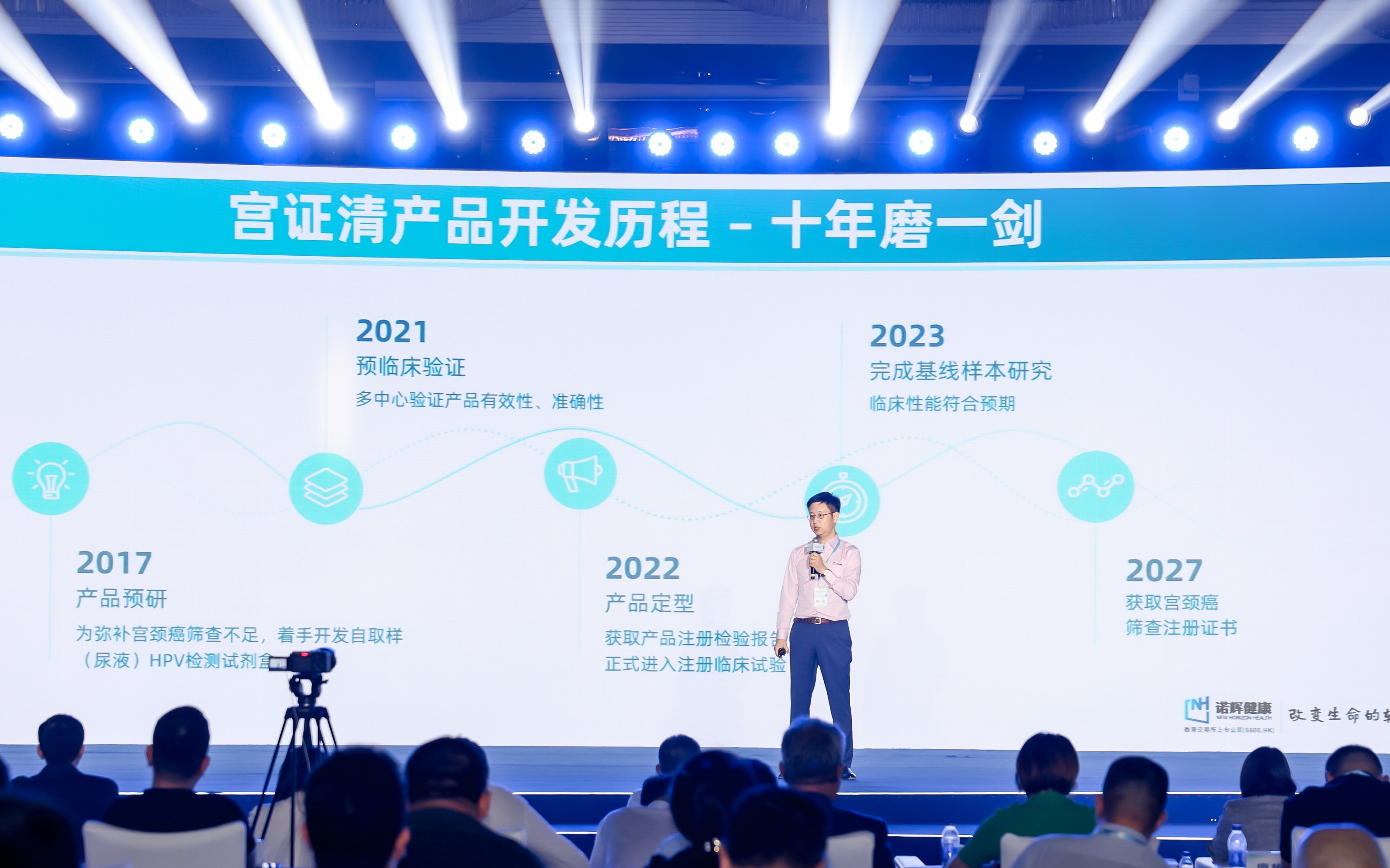 新京报讯(记者王卡拉)9月2日,在“第六届西湖对弈·暨癌症早筛与防治跨界高峰论坛”上,诺辉健康正式公布旗下宫颈癌HPV居家自取样筛查产品宫证清注册临床试验基线数据。宫证清是全球首款基于尿液样本无痛无创的宫颈癌HPV筛查产品,产品规划的开发周期长达十年,预计于2027年取得宫颈癌筛查注册证书。