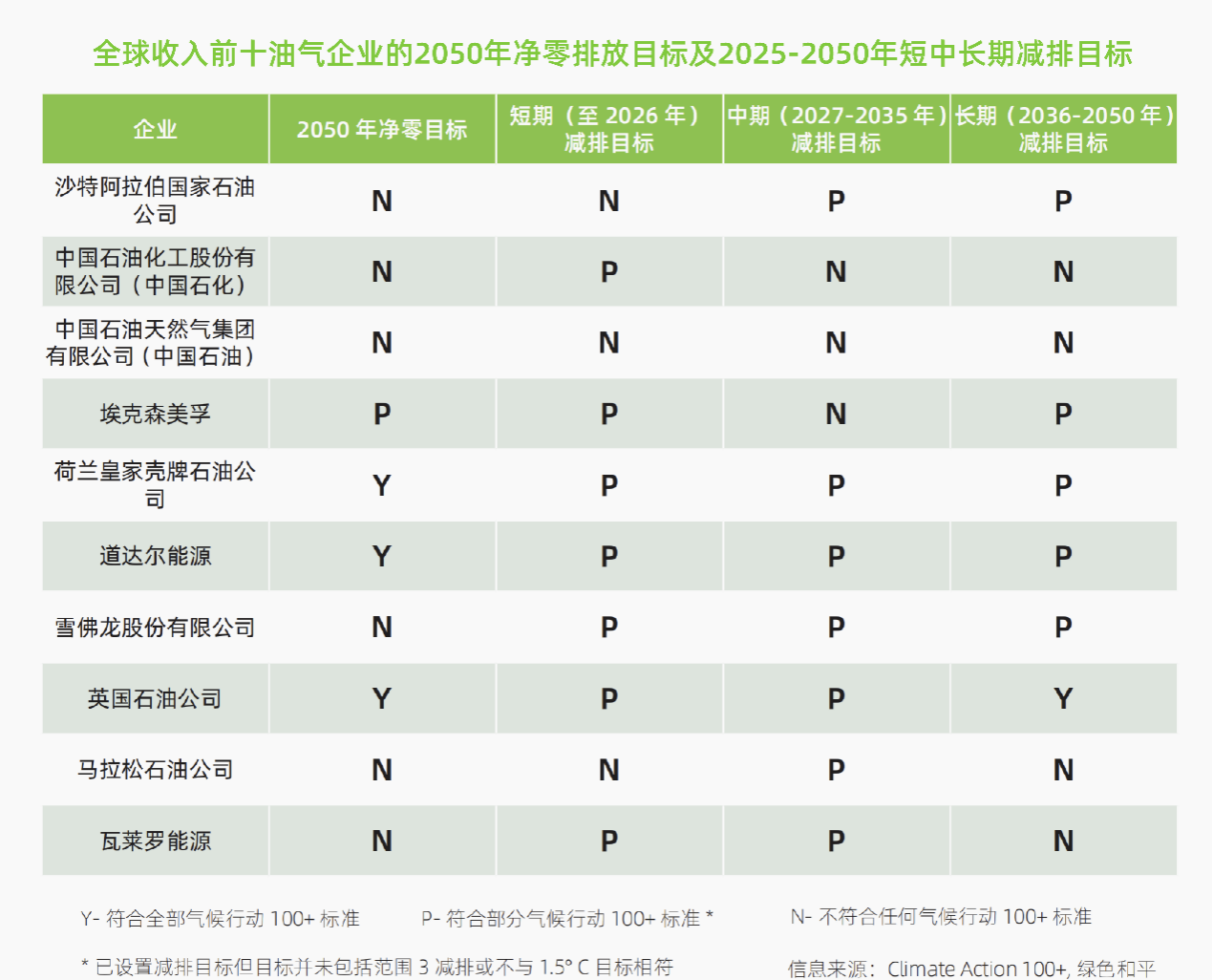 全球收入前十油气企业设定的排放目标。绿色和平供图