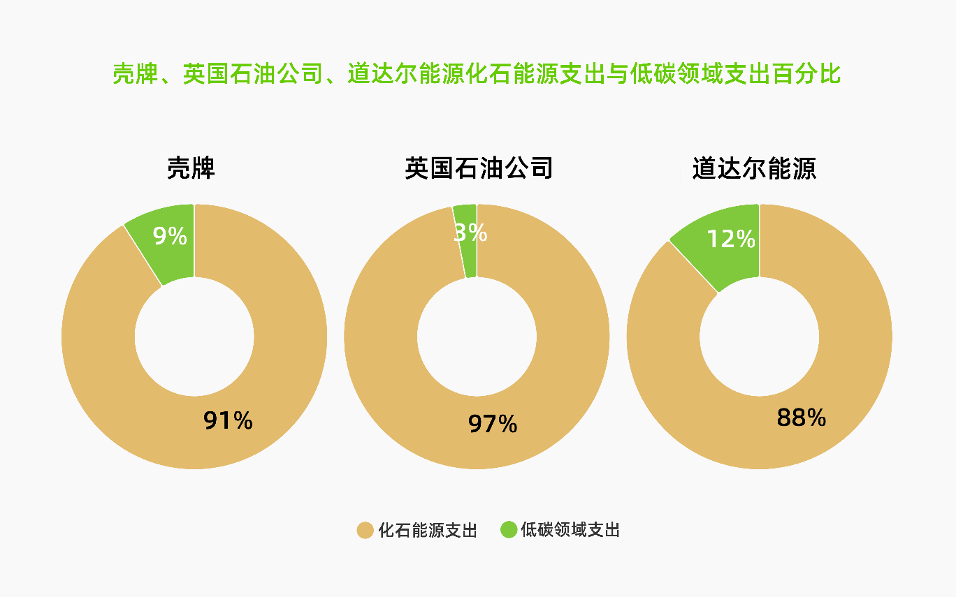 三家油气巨头化石能源支出与低碳领域支出的占比。绿色和平供图