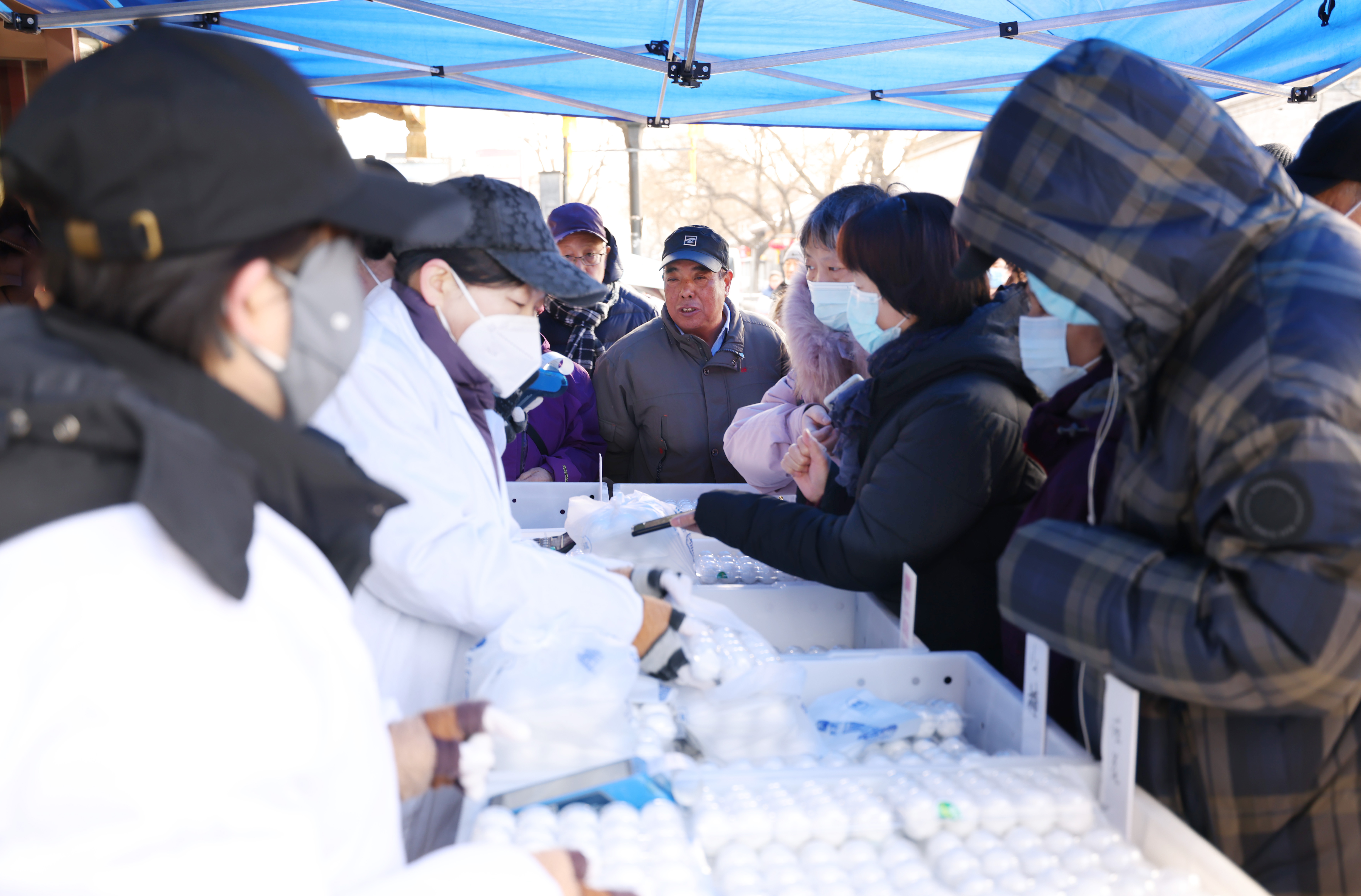 2月23日上午10时,位于护国寺街的护国寺小吃总店门前的元宵销售大棚前就已经排起了长长的队伍。“两盒黑芝麻、两盒什锦、两盒榴莲。”消费者李女士告诉新京报记者,自己每年都会来这里购买元宵,“家里老人喜欢黑芝麻这样的比较传统的口味,孩子们‘点名’要吃榴莲的。”