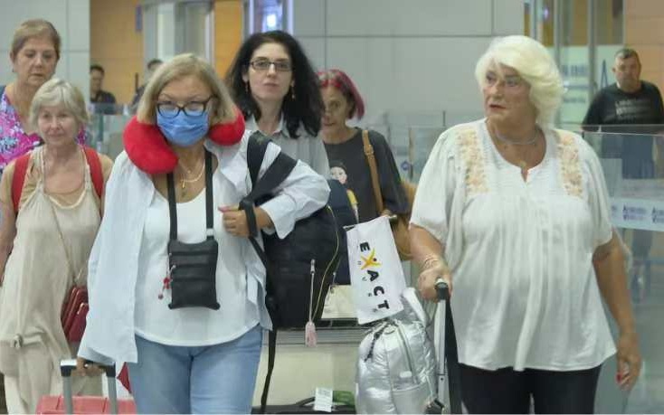 9月4日17时许,在上海浦东国际机场T2航站楼国际到达出口,来自罗马尼亚的旅行团入境来华,13位外籍游客将开启他们的十天中国之旅,结束旅行后从北京出境。