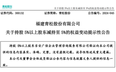 新京报贝壳财经讯(记者李铮)11月6日,新京报贝壳财经记者获悉,福建青松股份有限公司(以下简称“青松股份”)发布《关于原持股5%以上股东股份减持计划期限届满暨实施结果的公告》。