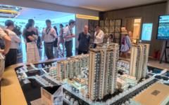 记者之后前往中海未来之境售楼处,这里同样人头攒动,热闹程度丝毫不减。因现场客户较多,销售人员分身乏术,记者在一旁等了差不多20分钟,才等到一位销售人员接待。