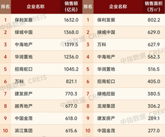 而根据克而瑞研究中心的排名,保利发展、中海地产、华润置地位居前三,绿城中国以1080亿元排名第五位,这是因为在中指研究院的排行榜中,将绿城中国的代建金额也计入其全口径销售额,导致了两家机构排名的差异。