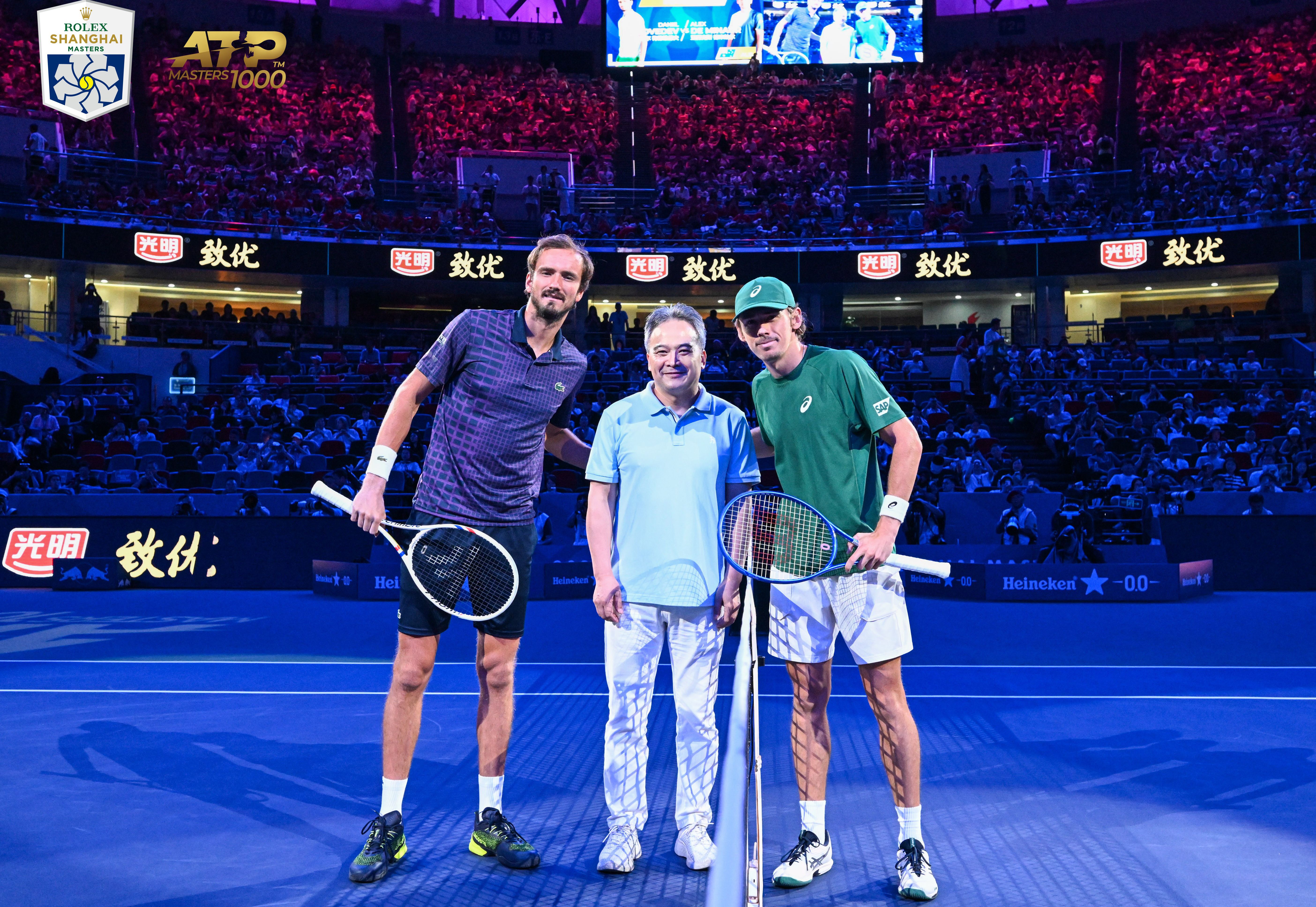 品牌日当晚,黄黎明受邀登台为四分之一男子单打比赛执行挑边仪式。当承载着赛事期待的硬币被抛向空中,不仅象征赛事进程的稳步推进,更传递出光明乳业始终与中国网球并肩前行、共逐突破的坚定承诺。
