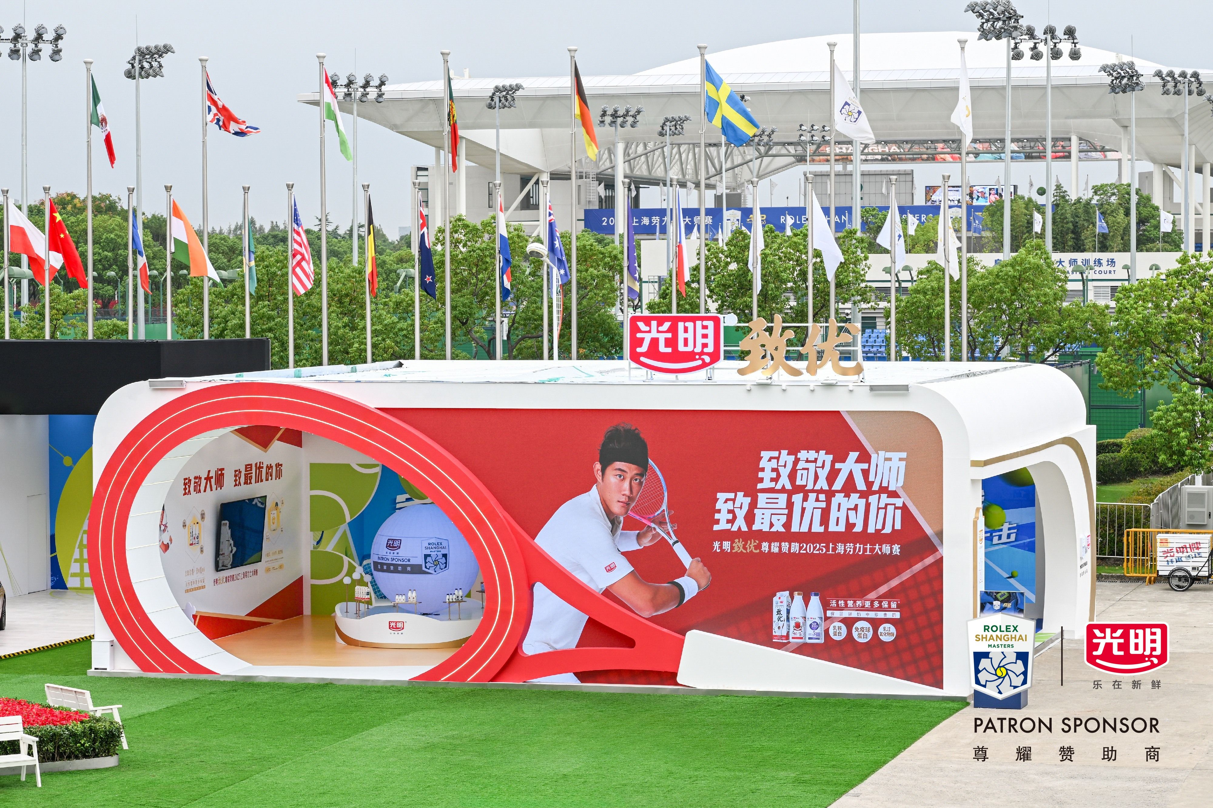 当ATP1000级赛事的激情席卷申城,百年乳企的鲜活力量正与竞技精神深度共鸣。9月29日至10月12日,2025上海劳力士大师赛在旗忠网球中心上演巅峰对决。作为自2018年起便与赛事深度携手的尊耀赞助商,光明乳业于10月10日重磅开启品牌日活动,以“致最优”的初心,为这场亚洲顶级网球盛事注入独特的“光明活力”。著名排球教练郎平、中国网球名将暨“光明鲜活大使”张之臻、光明优倍品牌代言人吴磊齐聚光明展台,与光明乳业党委书记、董事长黄黎明,党委副书记、总裁贲敏,以及致优品牌经销商与光明随心订幸运消费者代表,共同见证“鲜活营养”与“竞技精神”的深度交融。
