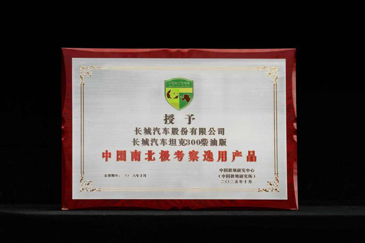 此次随南极科考队出征的坦克300柴油版,是未经特殊改装的原厂量产车型,将承担南极长城站科考任务中的运输与保障工作。签约仪式现场,中国极地研究中心授予该车型“中国南北极考察选用产品”,既是对其可靠性的认可,更是对长城汽车全体系研发实力的肯定。