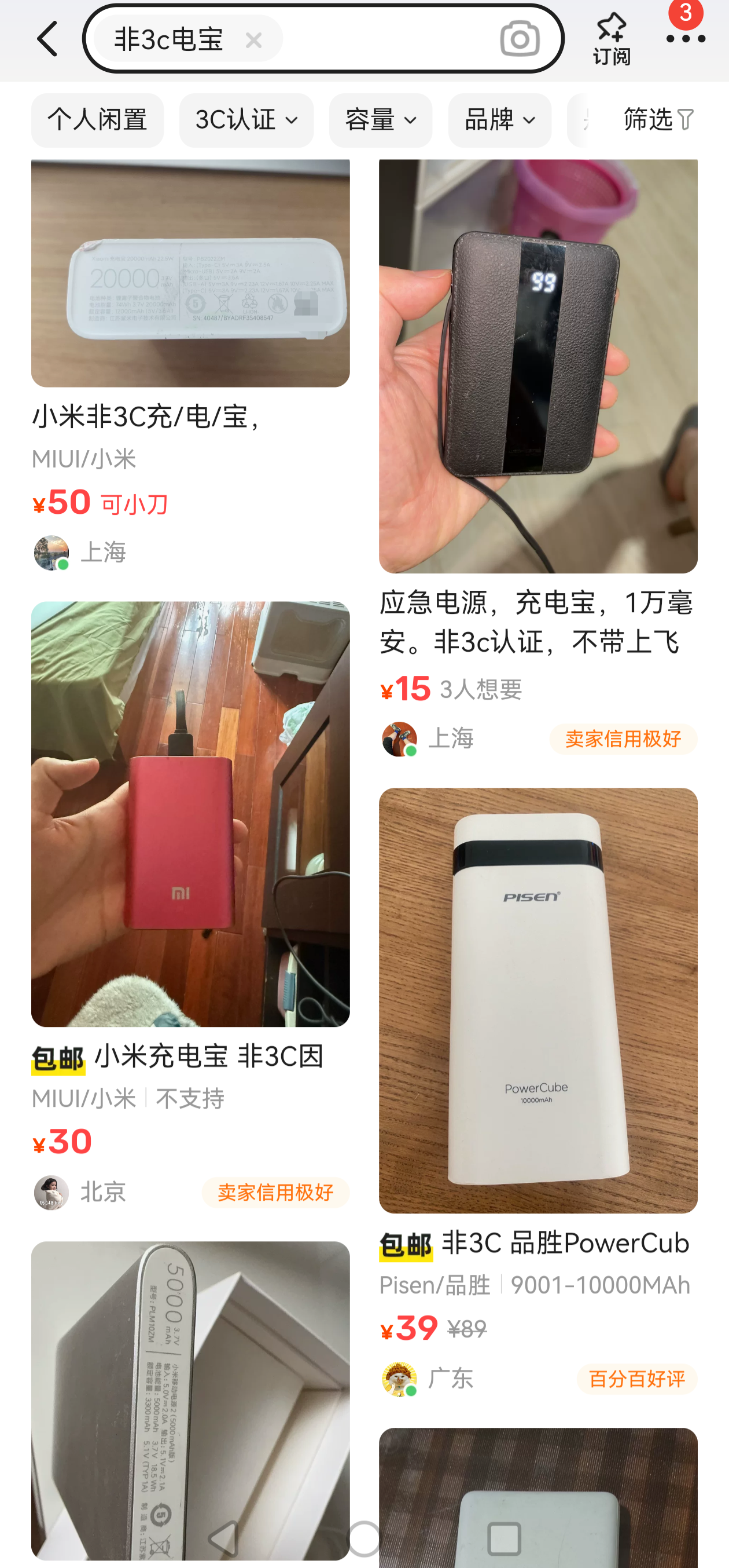 非3C充电宝在部分二手交易平台上低价销售。APP截图
